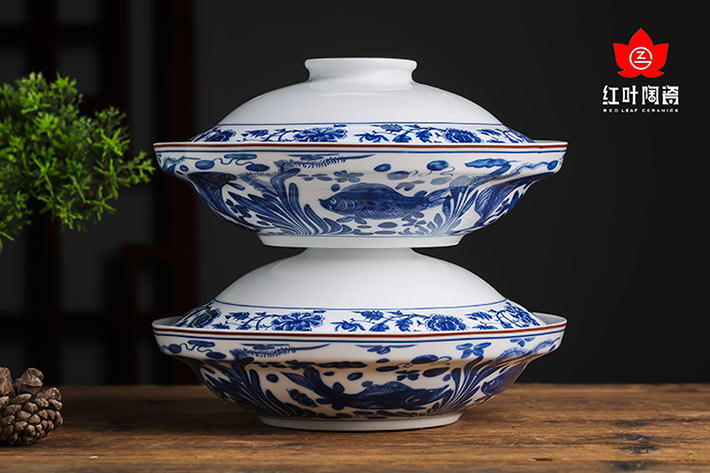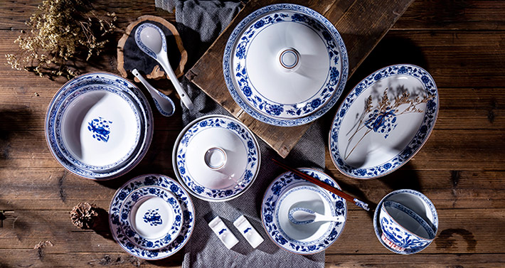 60頭元青花富貴有魚中餐具